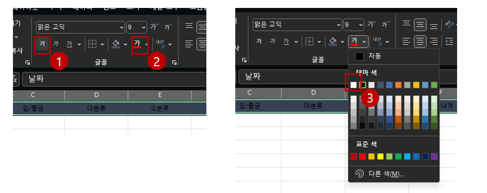 2) 글자 굵게 / 흰색으로 바꿔주기