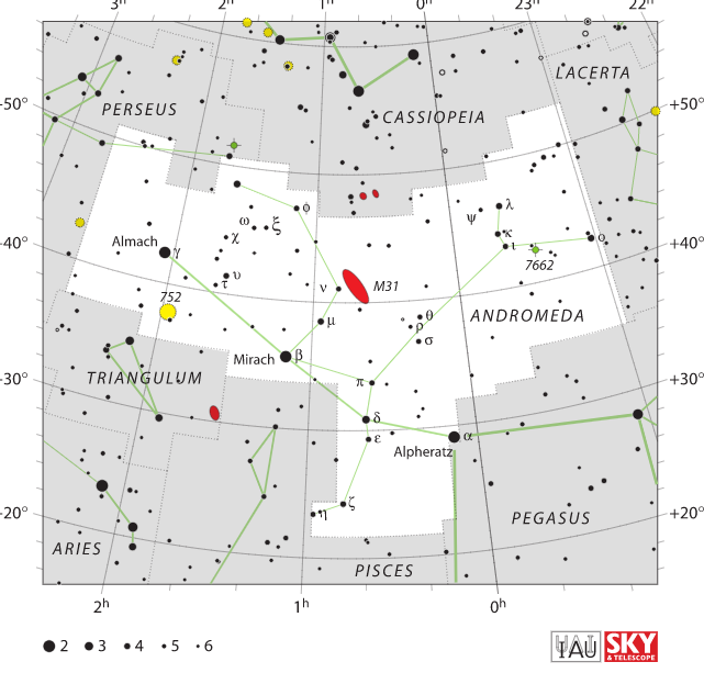 - 개략 위치 : 적경 0h 40m 0s 적위 +38°