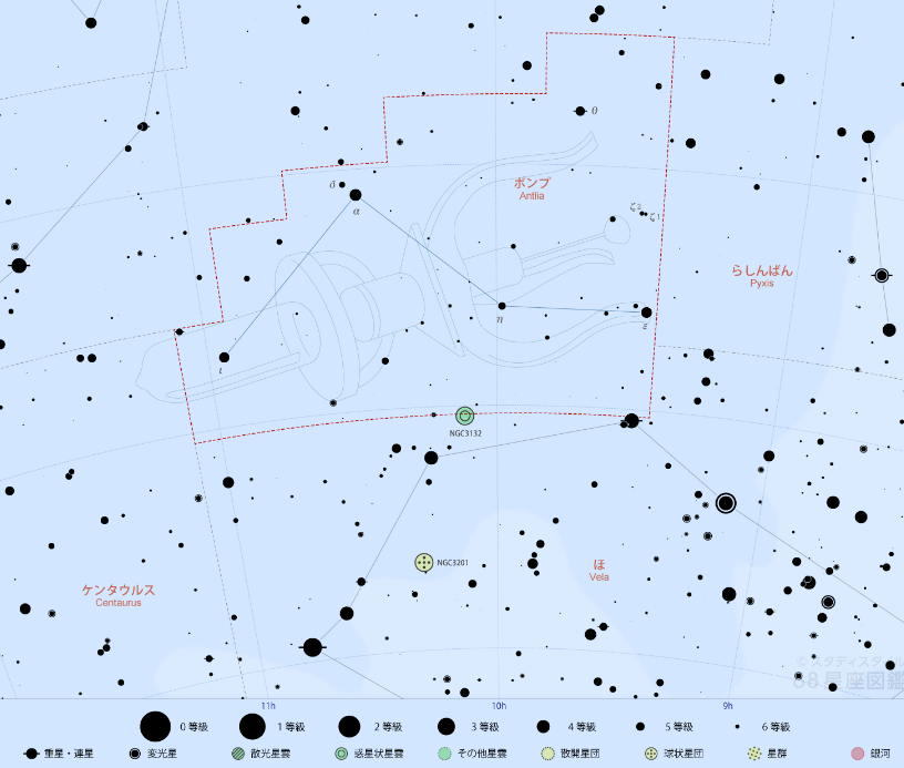 - 개략 위치 : 적경 10h 0m 0s 적위 -35°