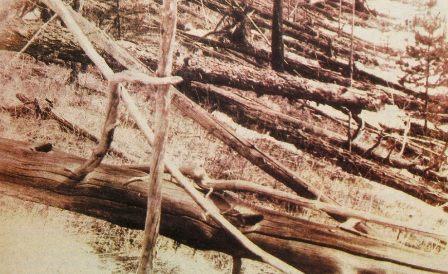 • 나무들이 방사형으로 쓰러져 있었으며, 폭발 중심지에서는 나무가 불타거나 제거된 흔적이 발견됨.