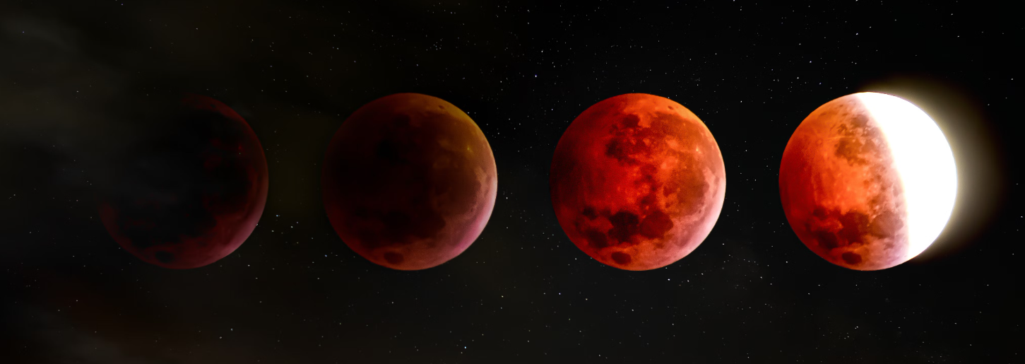 - 본그림자 (Umbra): 달이 본그림자에 완전히 들어가면, 달은 완전히 어두워지며 붉은 색을 띠게 됩니다. 이는 지구 대기에서 굴절된 태양빛이 달에 비춰지기 때문입니다.