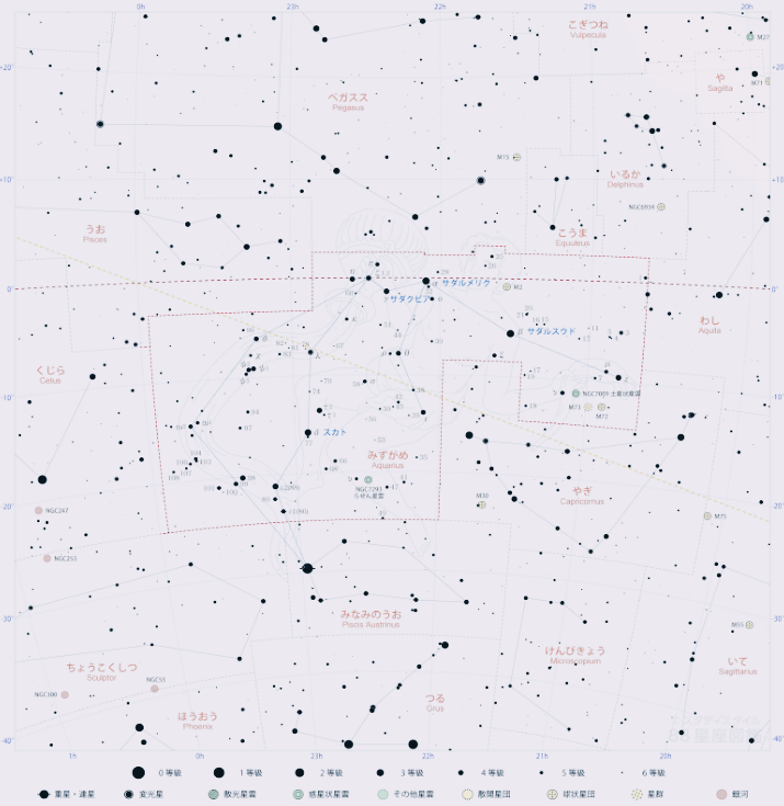 황도12성좌인 물병자리는 황도를 따라 동쪽으로 물고기자리, 서쪽으로 염소자리가 늘어서 있습니다.
