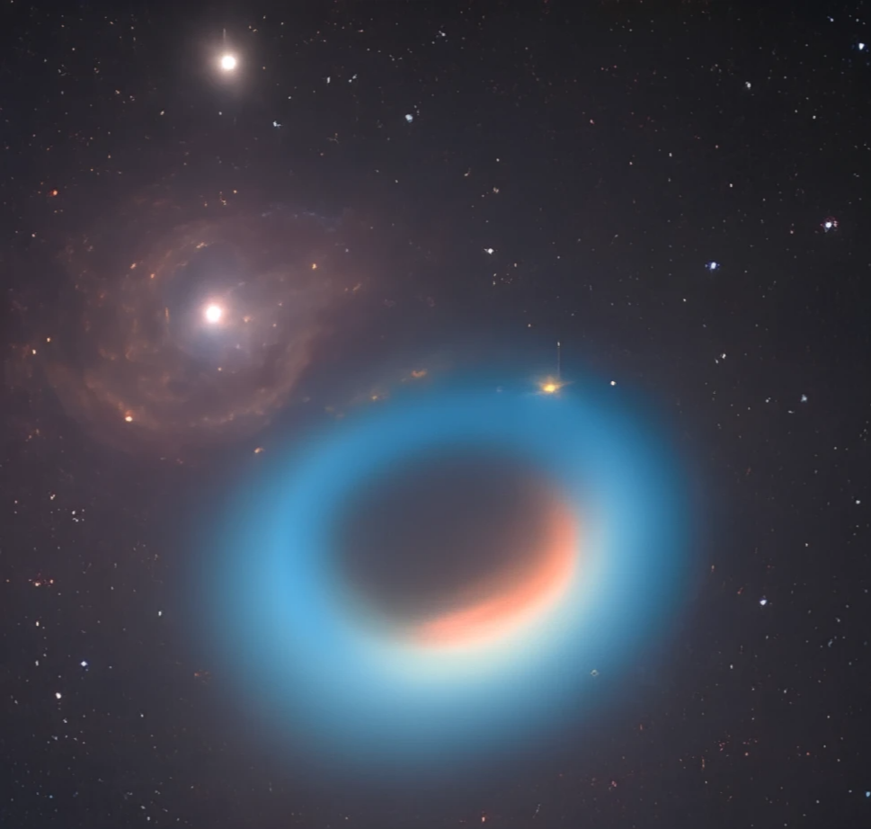 중력 렌즈 현상은 은하나 은하단과 같은 무거운 물체의 중력장이 그 뒤에 있는 멀리 있는 물체로부터 빛의 경로를 휘게 할 때 발생하는 현상입니다. 이 빛의 구부러짐은 광학 렌즈의 효과와 유사하게 배경 물체의 확대, 왜곡 또는 다중 이미지를 생성합니다.