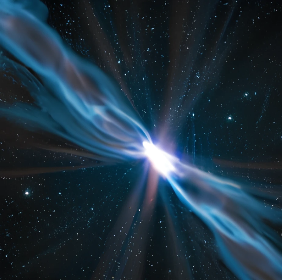 펄서는 빛의 펄스로 관찰되는 전자기 복사선을 방출하는 고도로 자화되고 회전하는 중성자별입니다. 중성자별의 회전은 강한 자기장을 생성하여 하전 입자를 가속하고 별의 자기 축을 따라 향하는 빔에서 방사선을 방출합니다. 빔이 지구를 향하면 우리는 그것을 방사선 펄스로 관찰합니다.