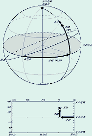 우리가 실제로 하늘에 있는 별의 위치를 나타내는 가장 간단한 방법으로는 방향과 높이를 이용하는 것입니다. 예를 들어
